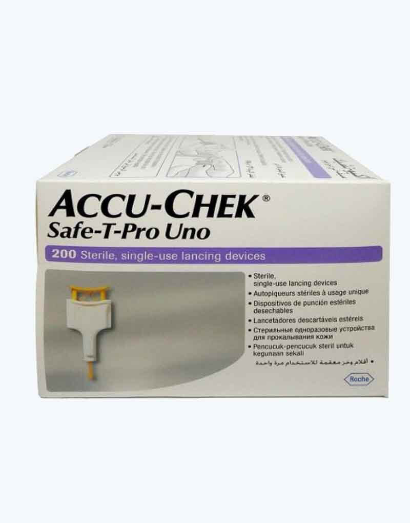 Accu-Chek Safe-T-Pro single use lancets are completely disposable lancet designed with Safe-T-Wing tabs positioned in a T-shape. It is used to obtain capillary blood from the fingertip. For added protection, the lancet permanently retracts into it’s protective case after use to prevent accidental needle sticks and cross-contamination during disposal.