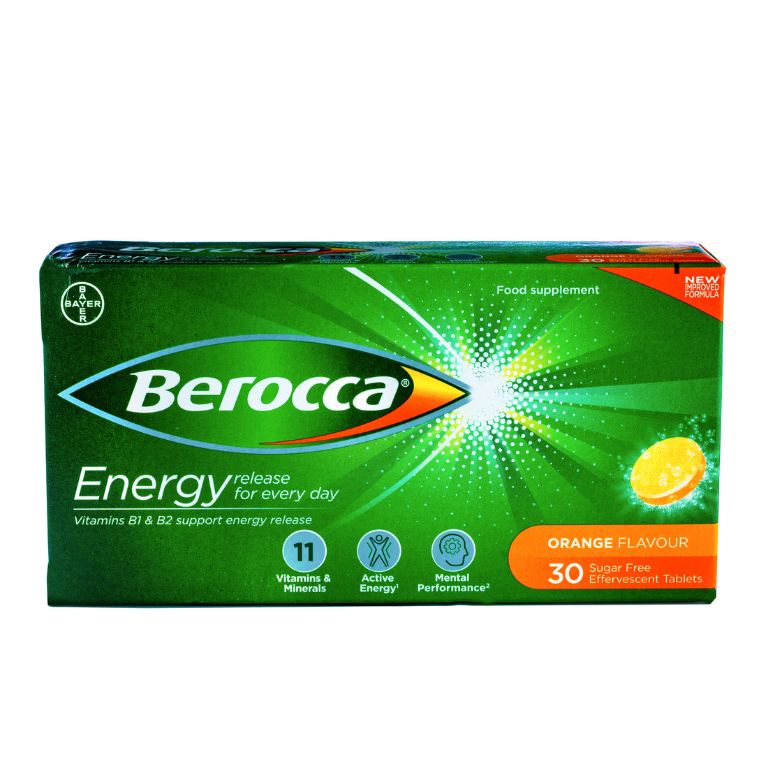 Berocca gives you extra support to help you stay on top of your game every day. It supports mental sharpness with caffeine and Guarana—a rainforest berry that natives used as an herbal caffeine source—and physical energy with key vitamins, including Thiamin (B1), Riboflavin (B2), Niacin (B3), Pantothenic Acid (B5), Vitamin B6, and Vitamin B12 that help convert food to fuel. It also provides other key nutrients like Vitamin C, magnesium, zinc, and more